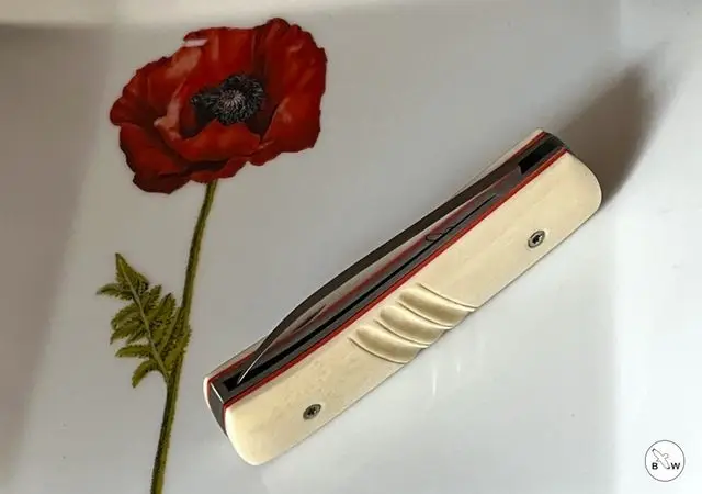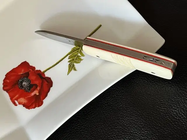 - Lame polie, acier inoxydable. Longueur 73mm, épaisseur 3mm et largeur 23mm.
