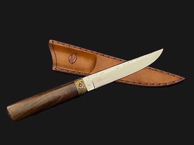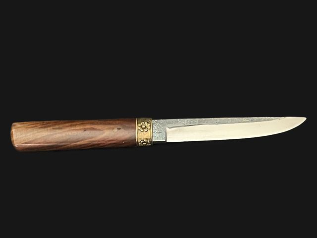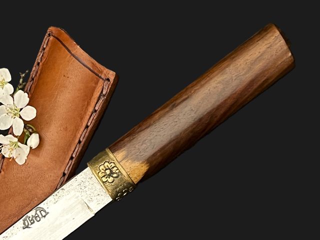 - Manche rosewood avec anneau en cuivre, gravure fleurs et nanako à la main. Cheville en bambou.