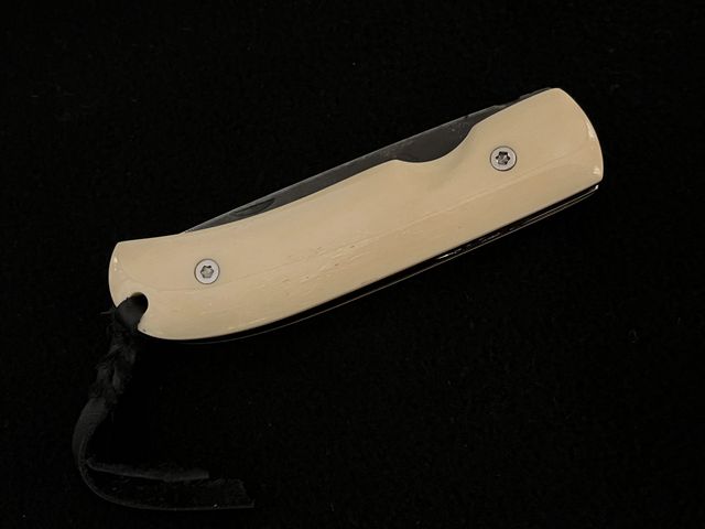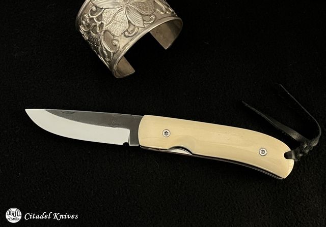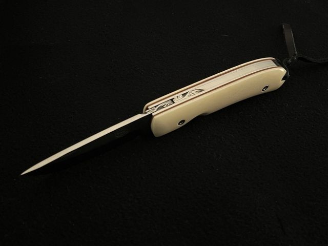 - Lame faite main, brut de trempe et montée sur rondelles bronze-béryllium, serrage réglable. Longueur 84mm, épaisseur 3mm, largeur 22mm
