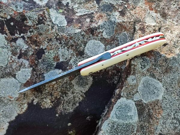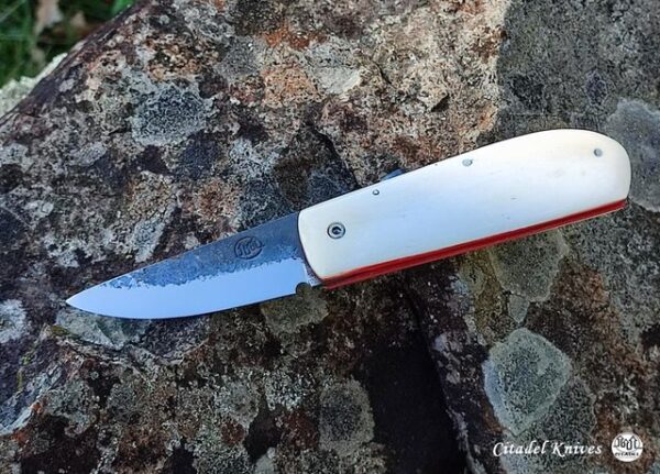 Couteau pliant à friction piémontais, léger et élegant. Manche en os de buffle. Sa lame en acier carbone, forgée main. Entièrement fait main par CITADEL