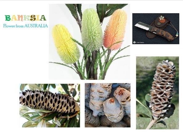 Couteau pliant original à la belle lame courbe, très pointue en acier inoxydable N690Co Böhler, associant un levier à un système de bloquage liner-lock. Plaquettes en banksia stabilisé. Entièrement fait main par CITADEL.