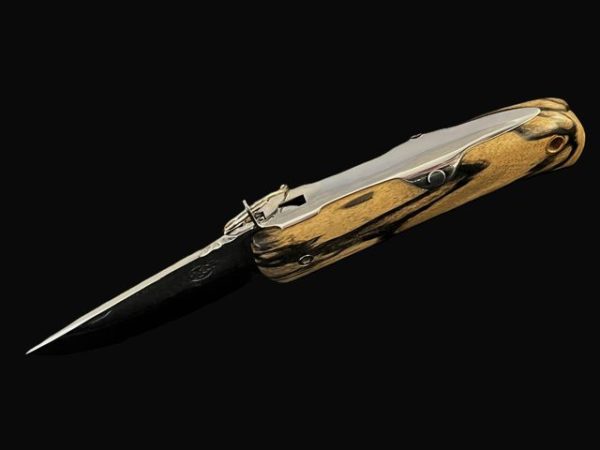 - Beautiful ebony royal wood handle with steel spring and characteristic ring. Thickness 22mm and width 31mm.