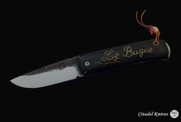 - Hand forged blade mounted on nylon washers. Differentially hardened carbon steel, brut de forge. Partially hand chiseled on spine. Adjustable tightening. Length 90mm, thickness 3.5mm and width 28mm.
