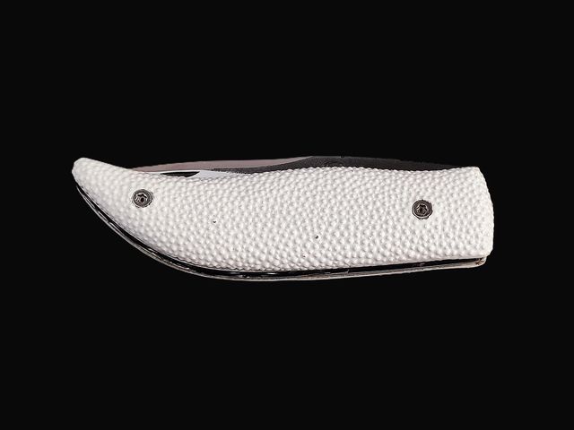 - Z40C13 stainless steel frame, filework along the back and disassemblable scales. Width 30mm, thickness 23mm.